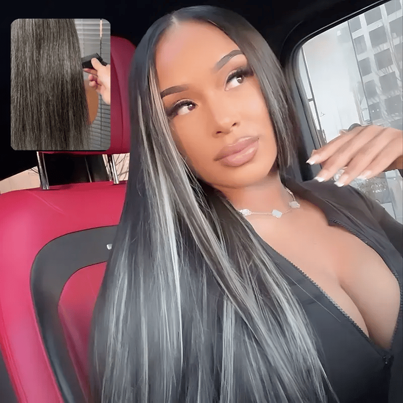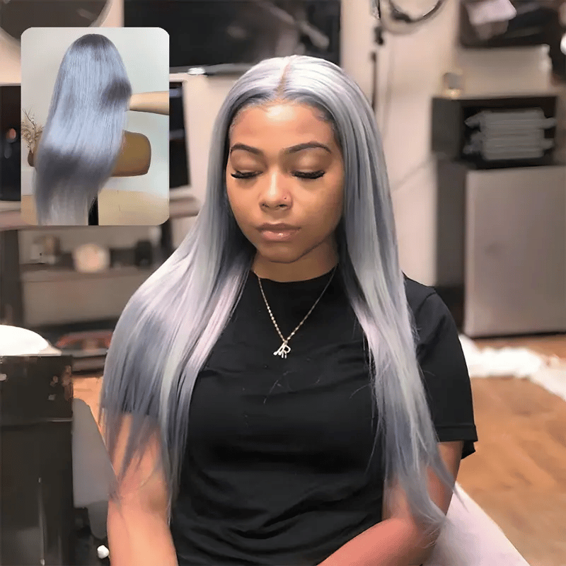 Rovess Silver Grey Straight 18-34 Inch Lace Front Wigs Human Hair Can Be Styled 13x4 Silver Grey Lace Front Wig Human Hair