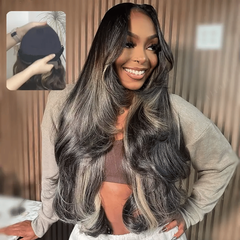 4/27 Highlight Brown Ombre Body Wave 13x4 Lace Front Wig 18Inch 30Inch Human Hair Pre Plucked Natural Hairline