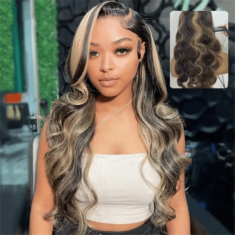 4/27 Highlight Body Wave Lace Front Human Hair 13x4 HD 26-34 Inch Blonde Ombre Wigs Human Hair For Black Women