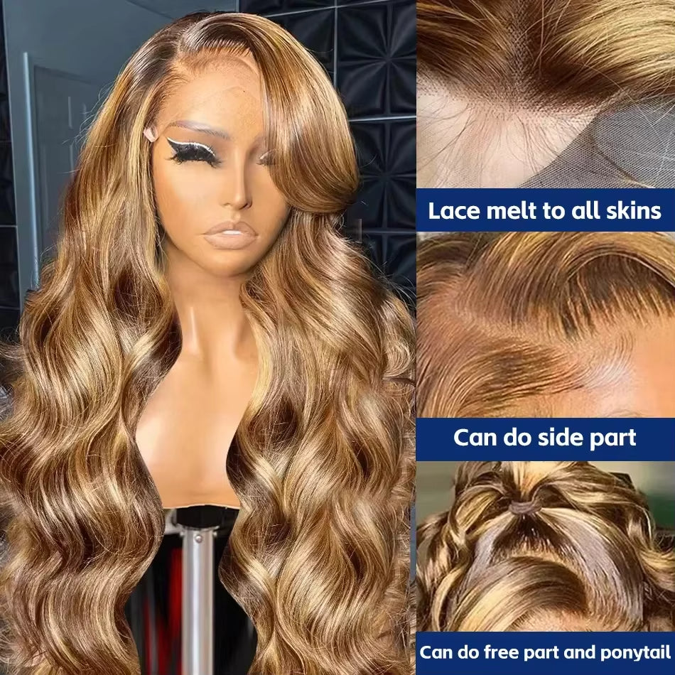 4/27 Highlight Honey Blonde Ombre Lace Front Wig Human Hair 18-40 Inch 13x6 Body Wave Human Hair Wig Black Women