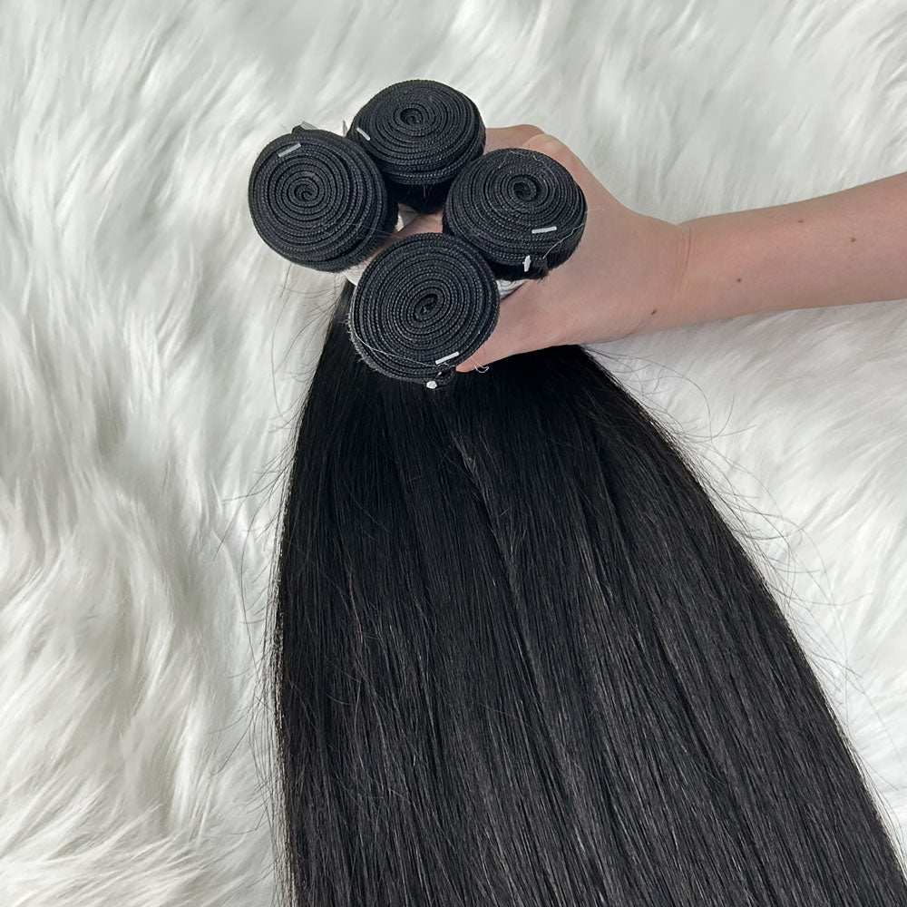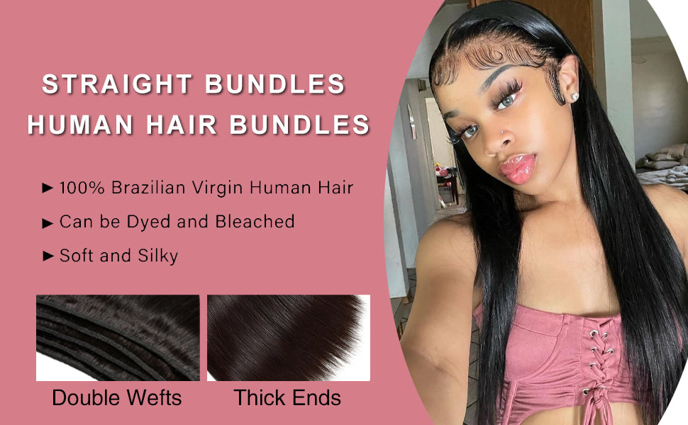 Offre spéciale pour la Saint-Valentin – 2 cadeaux GRATUITS | 100 % cheveux humains réels vierges péruviens lisses en paquets (4 pièces, 18–34 pouces)