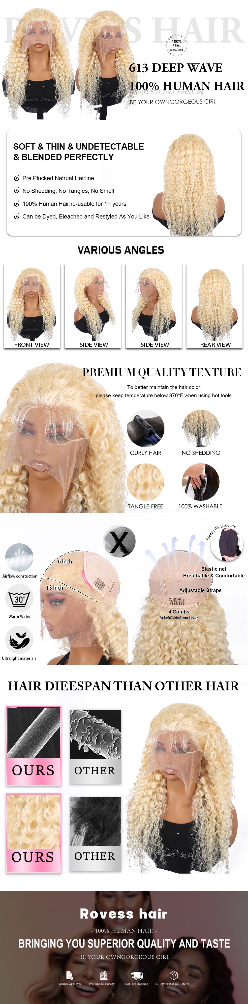 Hair Material:Deep Wave 613 Blonde 13X6 HD Transparent Lace Front Wigs for Black Women Human Hair,Glueless Wigs Human Hair Pre Plucked Wear and Go Bleached Knots with Baby Hair.Suitable for all hair types.