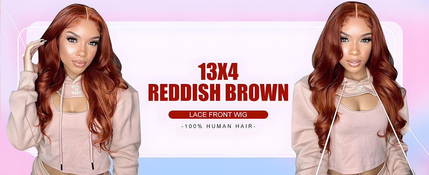 Reddish Brown Lace Front Wigs Human Hair Material:100% Unprocessed Grade Brazilian Virgin Human Hair, Hd Transparent Lace, Clean, Healthy, Soft And Bouncy, Natural, Tangle Free, No Shedding, Full And Thick.