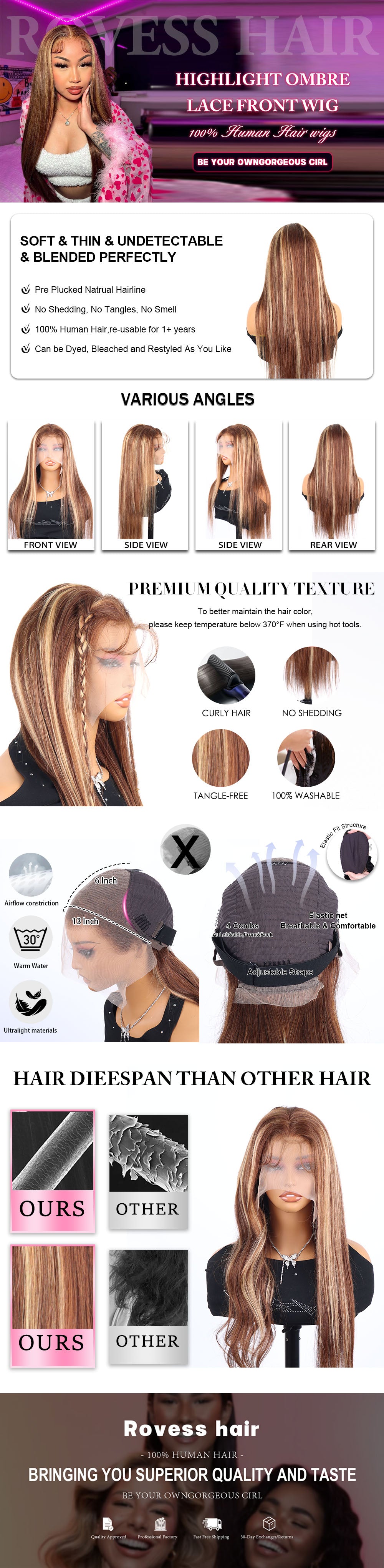 • 4/27 Highlight Wig Suitable for Occasions – The 13x6 honey blonde straight lace front wig human hair is perfect for weddings, appointments, themed parties, back to school, daily life, and more—adding confidence and charm to your style.