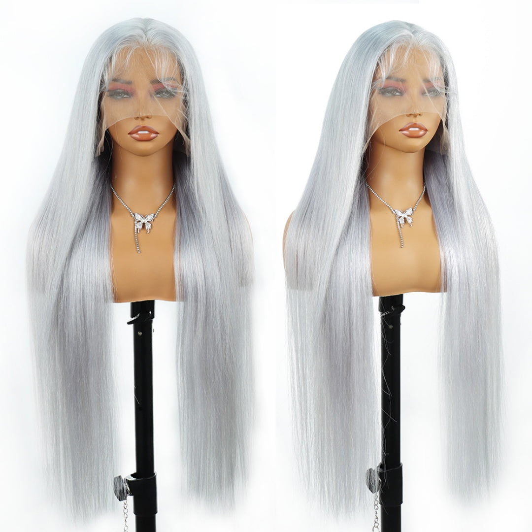 Rovess Silver Grey Straight 18-34 Inch Lace Front Wigs Human Hair Can Be Styled 13x4 Silver Grey Lace Front Wig Human Hair
